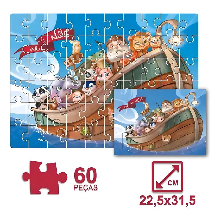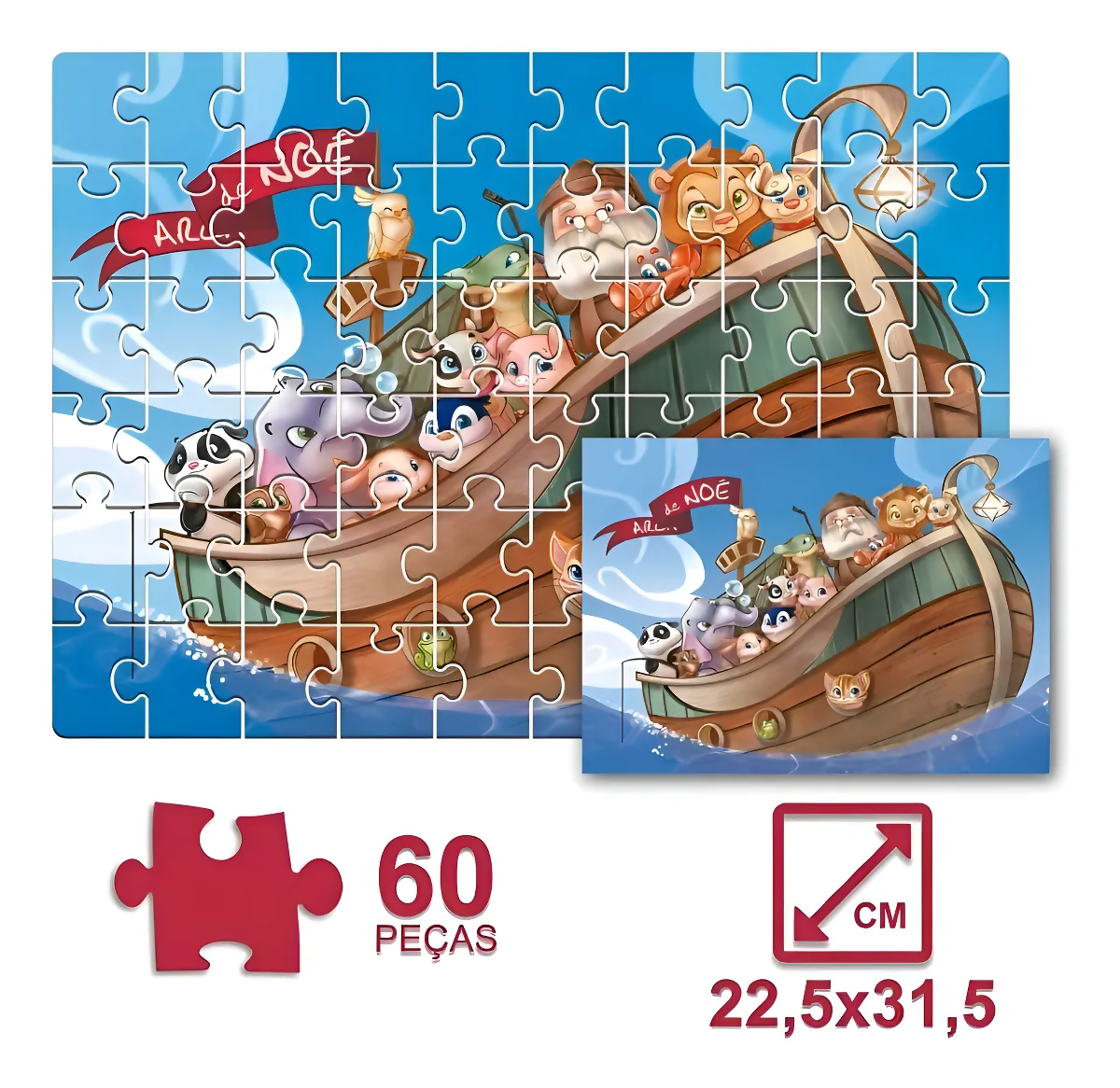 Quebra-Cabeça Arca de Noé com 60 Peças