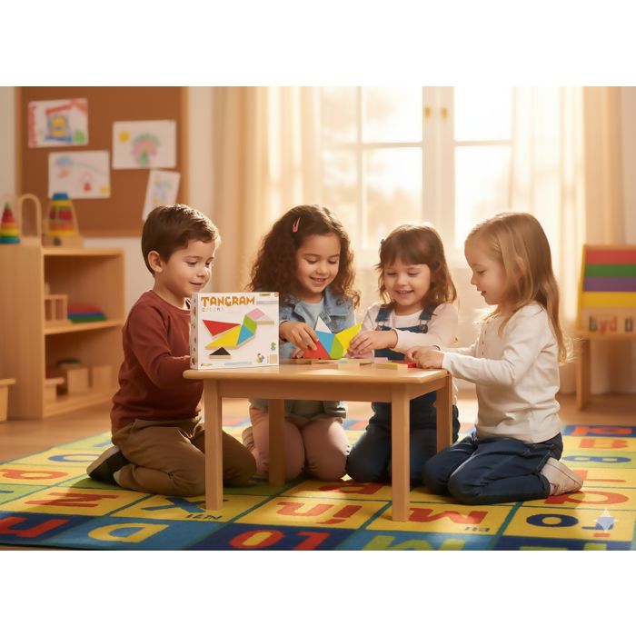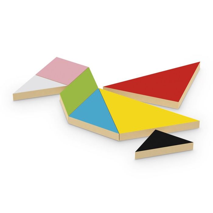 Com suas 7 peças geométricas coloridas de madeira, o Tangram não é apenas um jogo, é uma experiência rica que desenvolve uma série de habilidades essenciais na criança: Estimula a criatividade, raciocínio, aprimora a percepção, resolução de problema e coordenação motora fina.